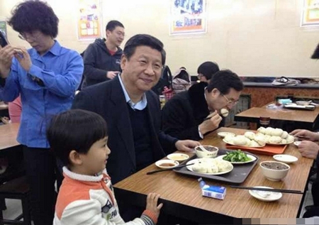 (2013年12月18日,在没有提前通知的情况下,习近平来到北京月坛北街路口西北角的庆丰包子铺内吃包子。点餐时,他坚持排队,亲自拿钱在点餐台和其他人一样点餐取餐。排队时,他还跟其他顾客亲切地说话,聊家常。)