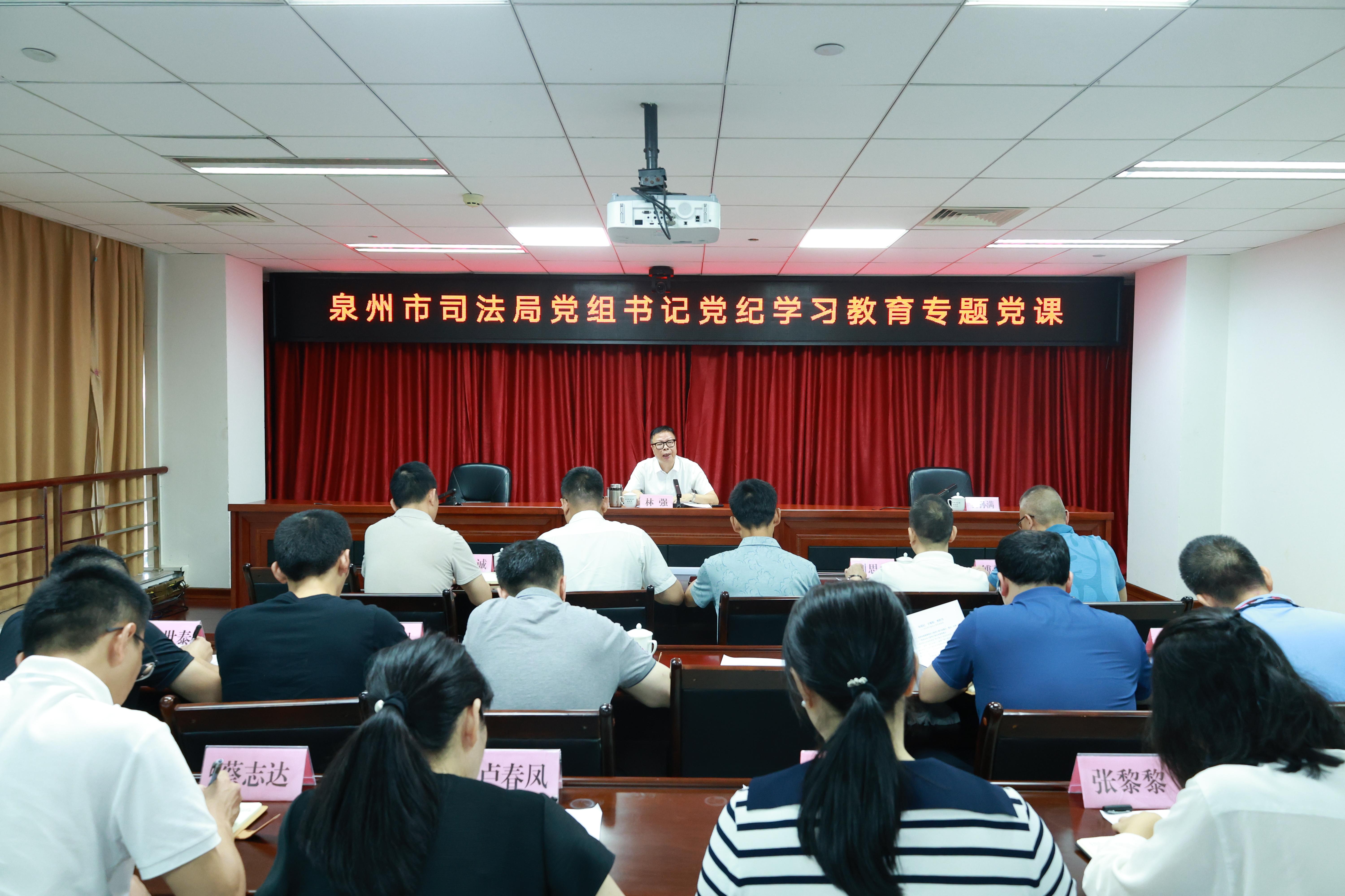 为进一步提高党员干部的纪法意识,根据党纪学习教育工作安排和领导干部上党课规定,6月25日上午,泉州市司法局党组书记、局长、一级调研员林强以《知党纪、守规矩、勇担当》为题,讲授党纪学习教育专题党课。局机关全体党员、干部职工,直属单位负责人、党支部书记聆听了党课。