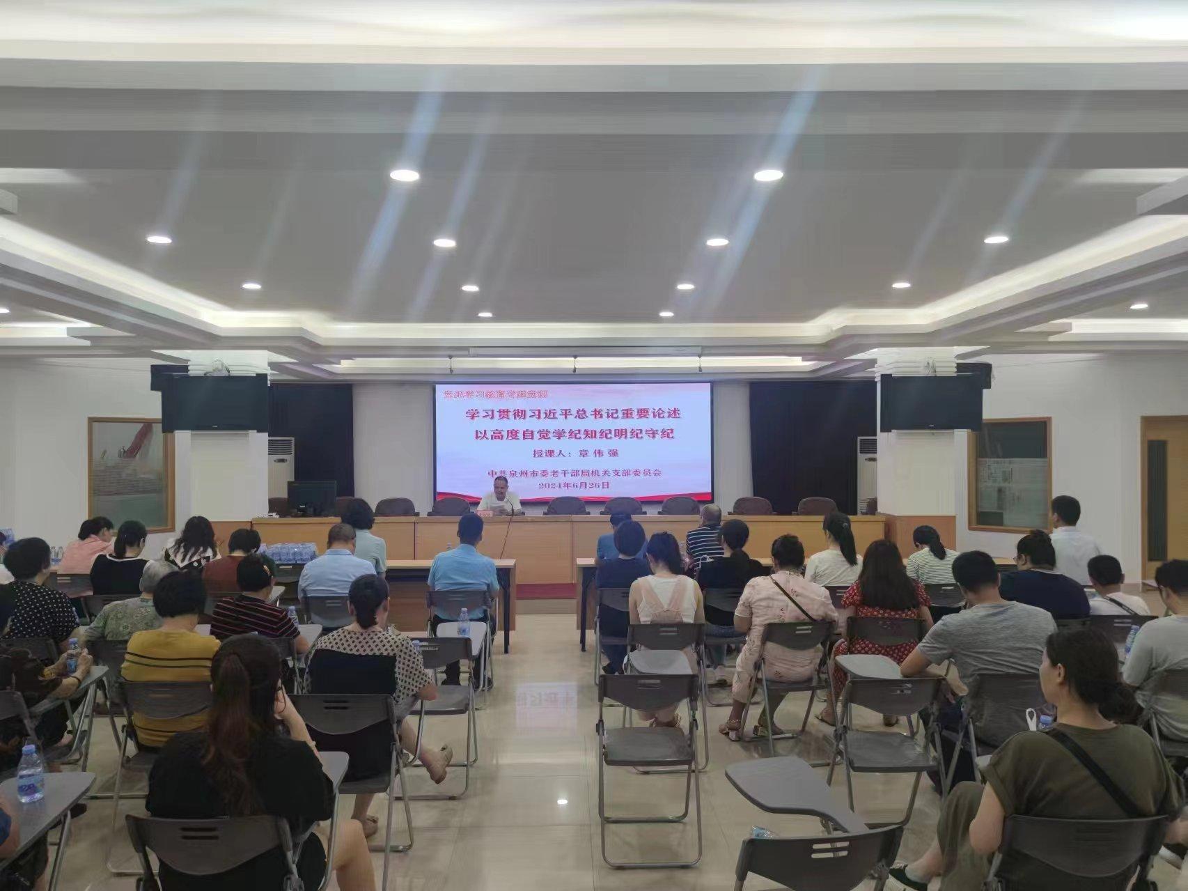 在东涂社区“党建+”邻里中心二楼多功能厅,市委老干部局副局长、机关党委副书记、机关党支部书记章伟强以《学习贯彻习近平总书记重要论述 以高度自觉学纪知纪明纪守纪》为题,为机关党员和社区党员讲授党纪学习教育专题党课。他从“深刻领悟习近平总书记关于加强党的纪律建设的重要论述”“准确把握新时代加强党的纪律教育的重要经验”“确保党纪学习教育任务落到实处”三个方面作了系统阐释,强调要提高站位,明确重点,切实增强政治使命感;要坚持党性党风党纪一起抓,放大标本兼治效能;要坚持把纪律挺在前面,做到知敬畏、存戒惧、守底线。现场还组织观看了《蜕变的“微权利”》《亮剑微腐败 护航大振兴》等警示教育片。
