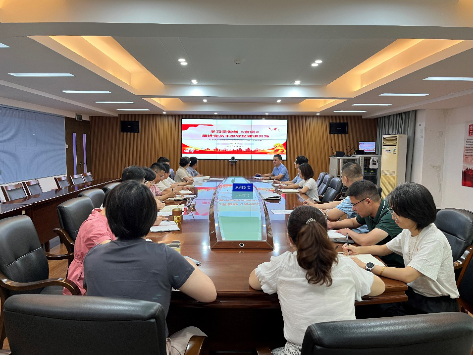 他强调,纪律是党的生命线,在全党开展党纪学习教育,是全面加强党的纪律建设、推动全面从严治党向纵深发展的重要举措。泉州水文全体党员、干部要时刻牢记党的宗旨和纪律要求,立足本职岗位,将学习成果融入防汛测报服务当地经济发展中,将学习成果融入到推进水文重点建设和提升水文业务管理水平的工作中,深学笃行,以坚定的决心和有力的措施,推动党纪学习教育不断取得新的成效。