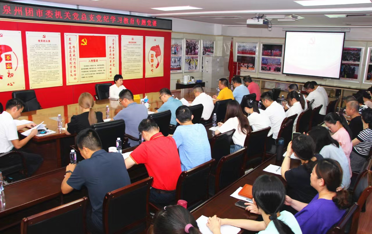 6月26日上午,泉州团市委书记张井丽以《学党纪永葆清澈纯粹 重实践展现青春担当》为题,为机关及下属事业单位全体党员讲授党纪学习教育专题党课。
