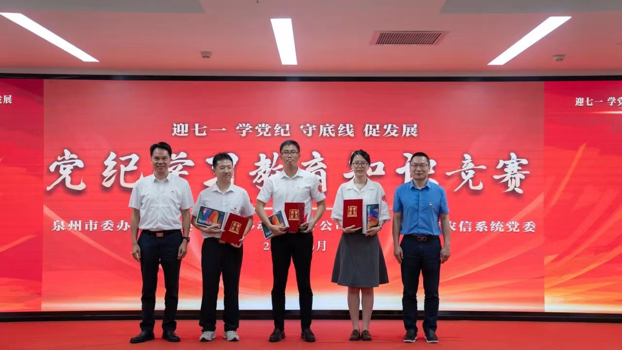 为庆祝中国共产党成立103周年,推进党纪学习教育走深走实,以多维共建的党建工作新模式凝聚党员干部奋进新征程的精神力量,6月28日,泉州市委办公室机关党委联合中国移动泉州分公司党委、泉州市农信系统党委共同开展“迎七一 学党纪 守底线 促发展”党纪学习教育知识竞赛。