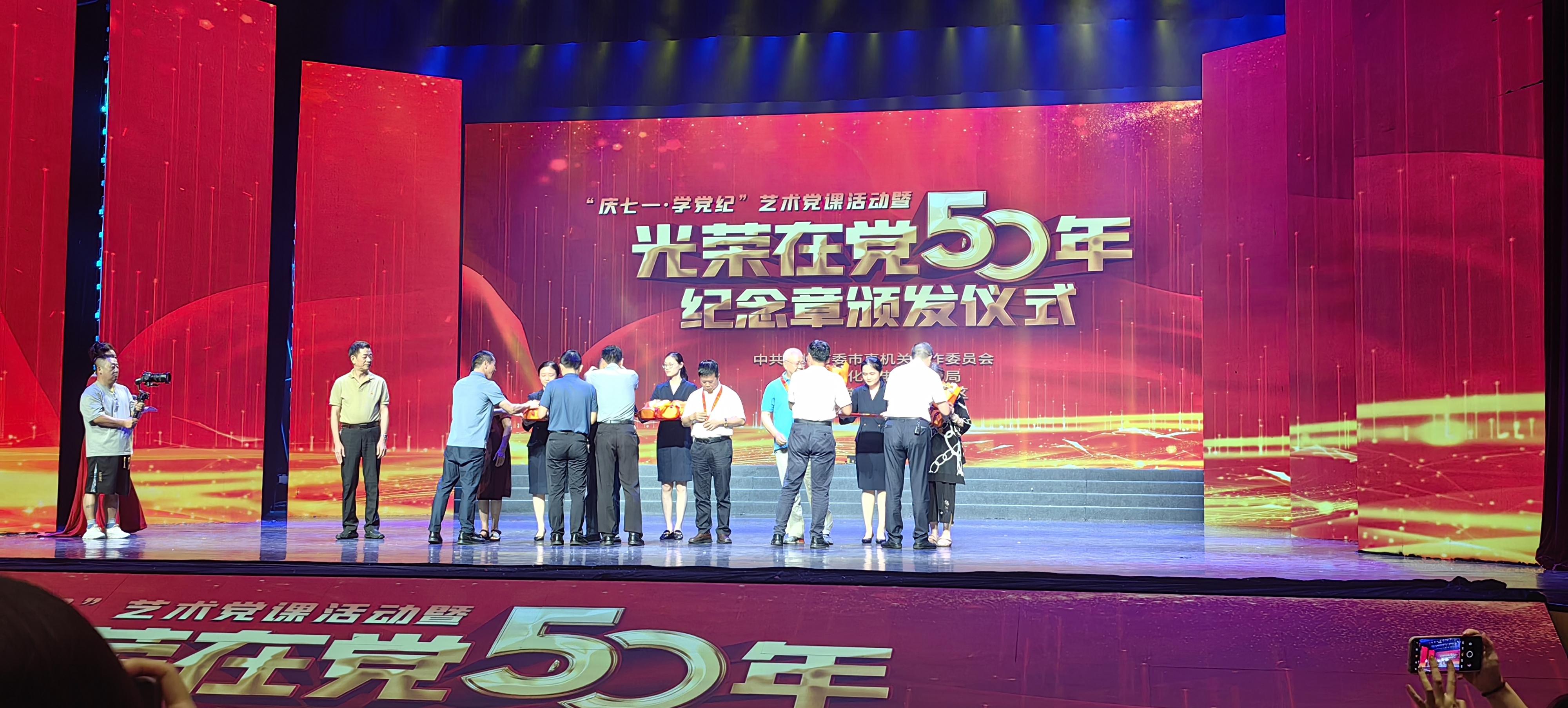 艺术党课以一首情景表演《唱支山歌给党听》拉开序幕,紧接着为今年获得“光荣在党50年”的老党员颁发纪念章、献花。“50年来,我深深感受到作为一名党员,要坚定共产主义信仰,勇于担当,敢于面对困难和挑战,在历史变革的大是大非面前,始终与党中央保持一致,始终保持对党的忠诚和热爱,牢记自己是一名共产党员。”老党员孙碧良激动地说:“虽然我退休了,但退休不褪色,要继续发扬党的优良传统和作风,不忘初心、牢记使命,为实现社会主义现代化奉献自己的余热!”