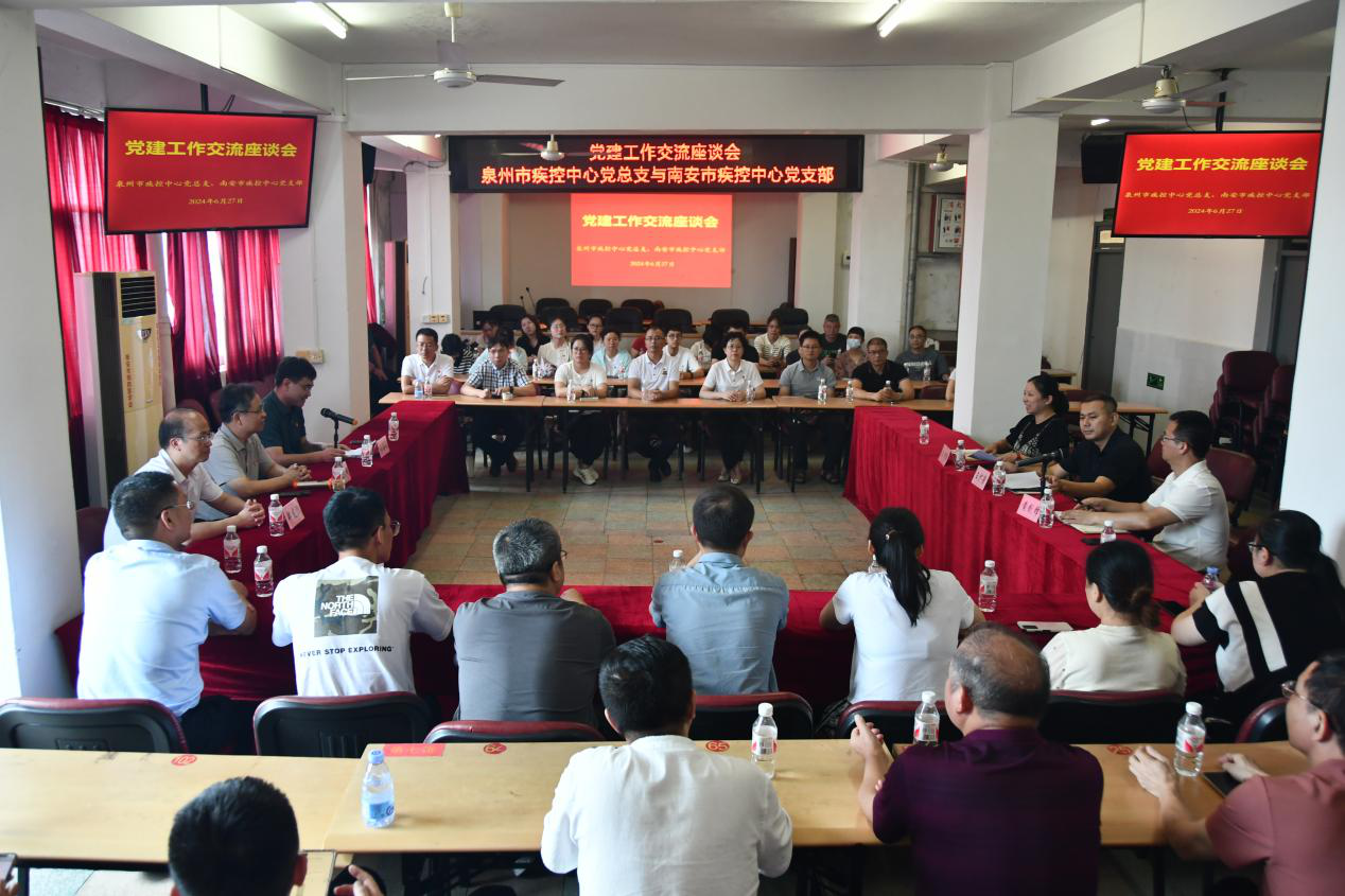 6月27日,泉州市疾控中心党总支与南安市疾控中心党支部开展交流座谈。会议由泉州市疾控中心党总支副书记、副主任黄唐嘉主持,泉州市疾控中心党总支书记、主任王伟明,泉州市疾控中心副主任郑友限,南安市卫健局副局长、疾控局局长王少芳,南安市疾控中心主任黄剑锋,南安市疾控中心党支部书记陈雅琴出席会议。座谈会上,泉州市疾控中心党总支和南安市疾控中心党支部分别介绍了党建工作特色亮点和实践成效,并围绕“坚持党建引领,推动疾控事业高质量发展”“新形势下如何抓好党业融合”“如何打造疾控党建品牌”等主题开展深入交流,探讨以高质量党建引领保障高质量发展、巩固拓展疾控系统三级联创机制、加强市县两级疾控中心党建工作互联互动等的思路举措,进一步统一思想、凝聚共识,为提升系统党建工作实效和疾控事业高质量发展夯基垒台。