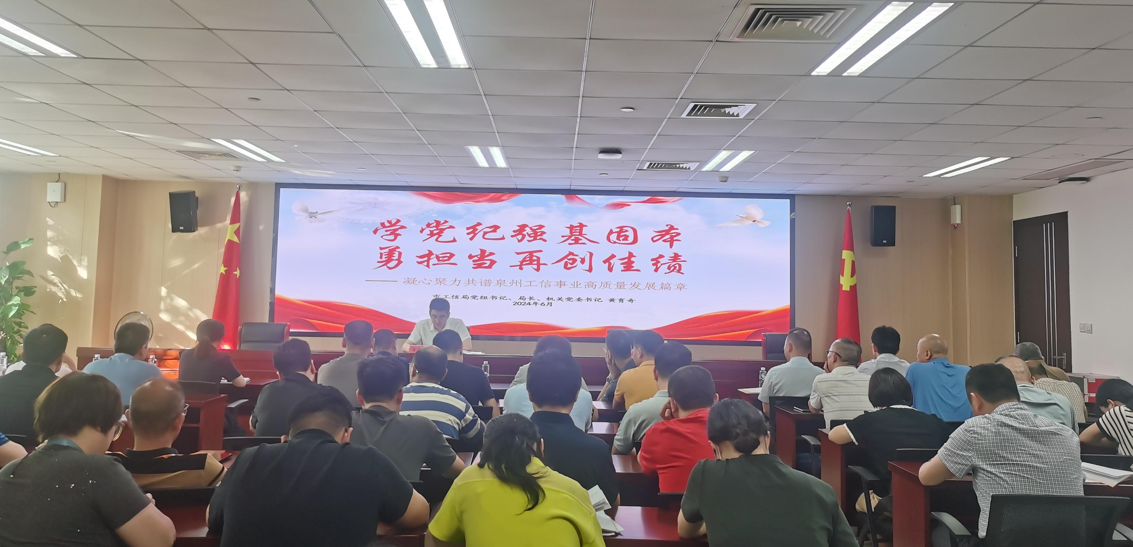 为推动党纪学习教育走深走实,引导广大党员干部认真学习《中国共产党纪律处分条例》,准确掌握“六项纪律”的主旨要义和规定要求,进一步强化纪律意识、加强自我约束、提高免疫能力,始终做到忠诚干净担当,近日,市工信局党组书记、局长、机关党委书记黄育奇以《学党纪强基固本勇担当再创佳绩——凝心聚力共谱泉州工信事业高质量发展篇章》为题,为市工信局全体党员干部上了一堂深刻的党纪学习教育专题党课。
