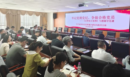 党纪学习教育开展以来,市住建局把讲好纪律专题党课作为重要抓手,充分发挥领导干部示范引领作用,围绕《条例》学习贯彻,结合住建工作实际,组织各党支部书记开讲纪律专题党课,进一步推动广大党员、干部学纪、知纪、明纪、守纪,把党纪学习教育的成果转化为推动住建事业高质量发展的实效。