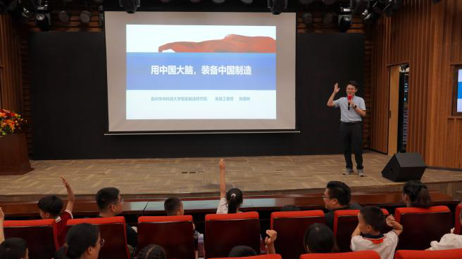 在科技馆学术报告厅里,一堂别开生面的主题思政课,在奇妙的科学表演秀中拉开序幕。课上,泉州华中科技大学智能制造研究院高级工程师张顺林以“用中国大脑,装备中国制造”为主题,跟大家分享了他们在数控系统研发路上的奋斗经历和感人事迹。课后,大家纷纷表示,本次的思政课,让他们认识到了学科学不仅仅是学知识,更是对科学家精神的传承,是实现强国梦想的助推剂。
