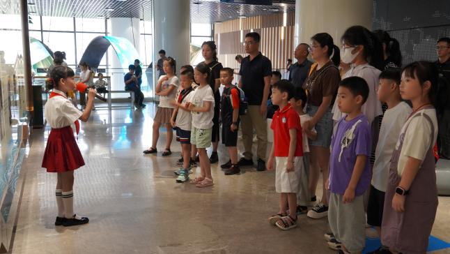 科学不仅是成就,更是初心的传承。在科技馆二楼的院士墙前,来自泉州外国语学校鲤城附属小学的小小红领巾讲解员曾馨,用她清脆的嗓音,宣讲着林俊德院士与张文裕院士的精彩故事和科学家精神,以全新的视角,向公众传递科普知识与科学精神。