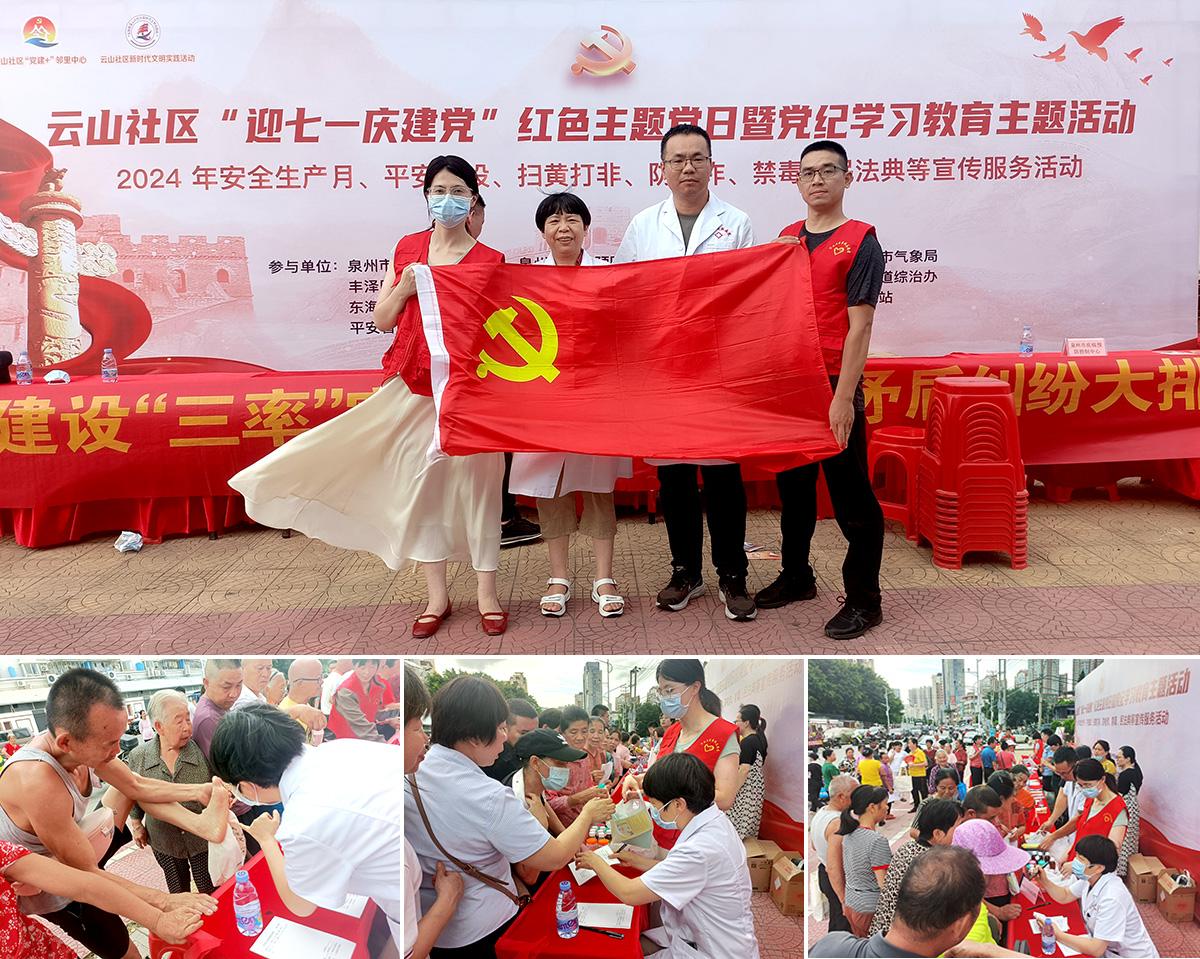 6月26日,组织志愿服务队前往云山社区开展“迎七一 庆祝建党”义诊服务,以“党建+”邻里中心为依托,持续深化“党旗在一线高高飘扬”和“三争”行动,为社区居民提供皮肤疾病诊疗和健康咨询,详细询问就诊群众身体状况、耐心分析病情、解答患者问题,赠送医院自制药品,同时积极向群众普及皮肤防病治病、禁毒防艾与美沙酮治疗等科普知识,帮助群众解决皮肤健康方面的实际困难,提高广大市民群众对毒品与艾滋病严重危害的认识,共同维护社会和谐稳定。