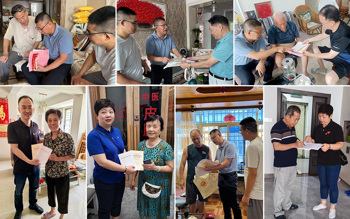6月28日,建党节来临之际,结合党纪学习教育,院领导带各党小组组长,深入退休老党员家中,开展慰问送学活动,关心了解老同志身体状况,倾听他们对医院发展和党支部建设的意见建议,送去了《习近平关于全面加强党的纪律建设论述摘编》、习近平总书记“7.9”重要讲话等学习资料,对党龄满50年以上的老党员还送去了“艺心向党 非遗献礼”戏曲券,邀请他们积极参加庆祝建党103周年系列活动,进一步引导老同志学思想、强党性、听党话、跟党走,始终做到“退休不褪色,离岗不离党”。