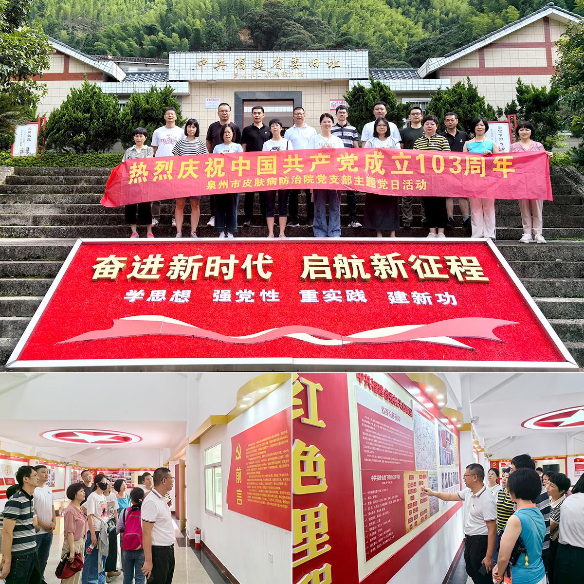 为庆祝中国共产党成立103周年,深入学习贯彻习近平新时代中国特色社会主义思想,扎实推动党纪学习教育走深走实,进一步传承弘扬红色基因,筑牢拒腐防变思想防线,连日来,市皮肤病防治院组织开展庆祝中国共产党成立103周年系列活动,充分发挥党建引领保障作用,推动各项工作高效率、高标准落实,不断提升公立医院党建工作影响力。