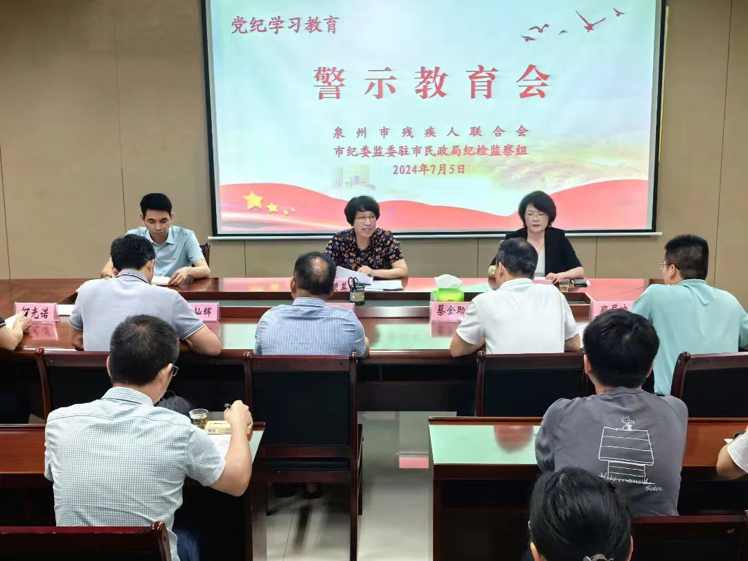 7月5日上午,泉州市残联联合市纪委监委派驻市民政局纪检监察组召开警示教育会。市残联党组书记白碧英主持会议并讲话。