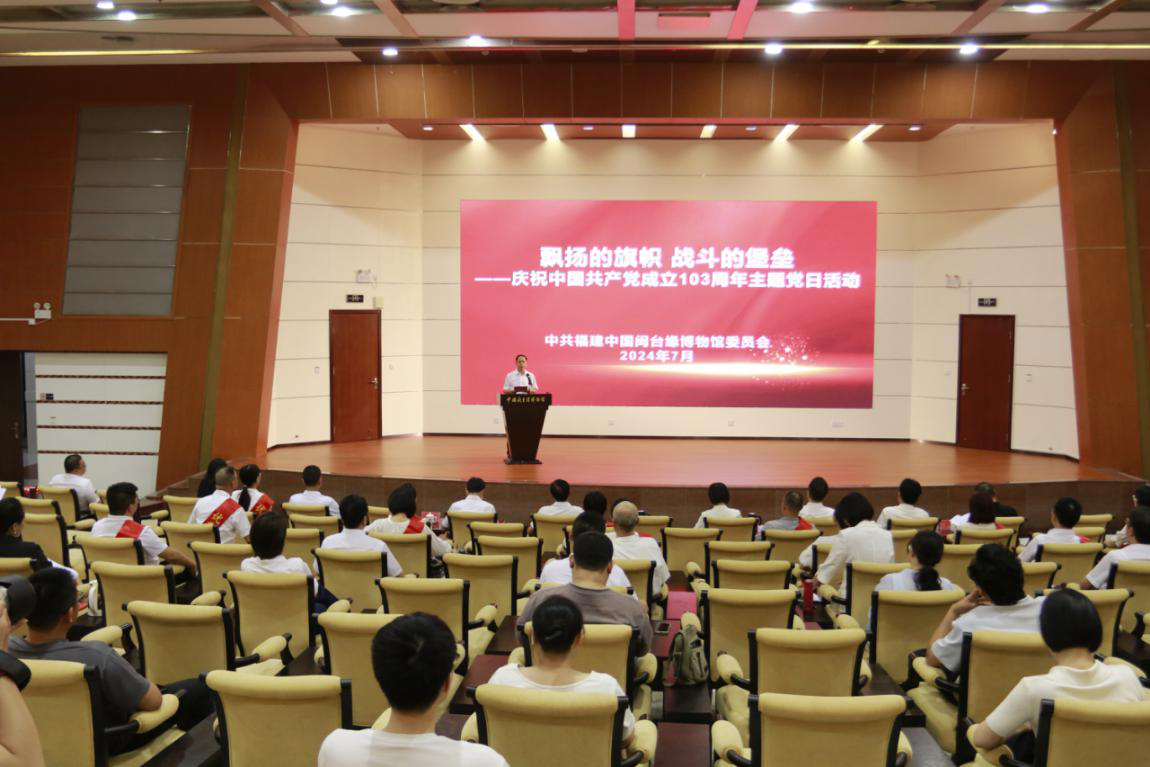 为庆祝中国共产党成立103周年,深入推进党纪学习教育,弘扬伟大建党精神,7月9日,中国闽台缘博物馆开展“飘扬的旗帜 战斗的堡垒”主题党日活动。馆党委副书记、馆长郑国防主持。