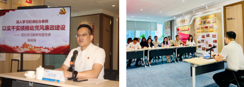 泉州市人社局党组成员、副局长、机关支部书记杨明涌为各位党员干部作以《深入学习中国共产党纪律处分条例——以实干实绩推动党风廉政建设》为主题的党纪学习教育专题党课,使全体党员干部进一步学习领会了新修订中国共产党纪律处分条例的精神要义和具体要求,增强了学纪知纪明纪守纪的思想自觉、政治自觉和行动自觉。