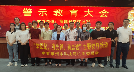 为推动党纪学习教育走深走实,进一步筑牢党员、年轻干部拒腐防变的思想堤坝。2024年7月11日上午,泉州市科技局机关党委组织党员、年轻干部到福建省洛江监狱开展“学党纪、当先锋、铸忠诚”主题党日活动,接受现场廉政警示教育。