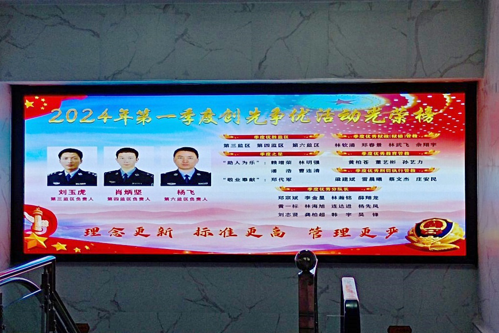 温室里长不出栋梁才,青年民警的成长成才同样无捷径可走,只有经风雨、见世面才能验真金、壮筋骨、长才干。监狱坚持“理念更新、标准更高、管理更严”原则,将党纪学习教育成效作为创先争优评比重要内容,设定专项指标,优化月考核评价体系,在监狱OA公告栏、LED大屏滚动播放季度优胜监区、季度之星等争创考评结果。