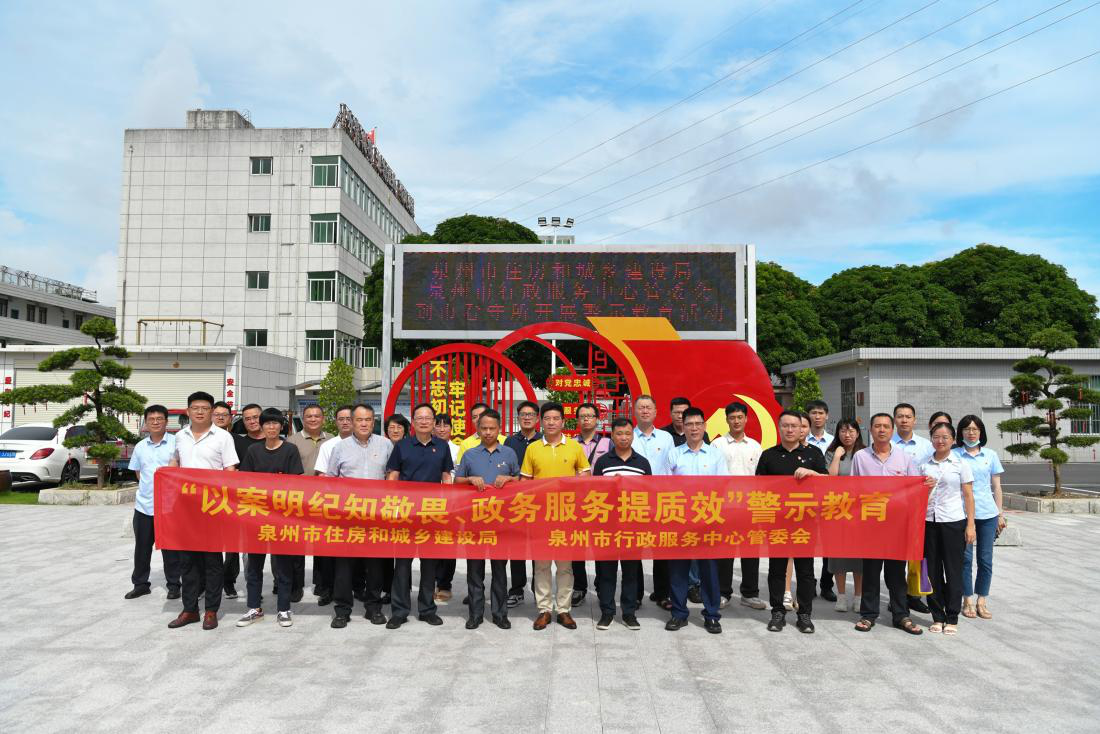 为扎实推进“政务服务窗口及为民办事岗位服务质效突出问题专项整治”工作,推动党纪学习教育走深走实,进一步增强审批岗位工作人员的廉洁自律和拒腐防变意识,推动全面从严治党向纵深发展,8月16日,泉州市住房和城乡建设局、泉州市政务服务中心管委会组织全市住建系统窗口审批服务和市政务服务中心高风险岗位工作人员共43人,赴泉州市看守所开展“以案明纪知敬畏、政务服务提质效”廉政警示教育活动。