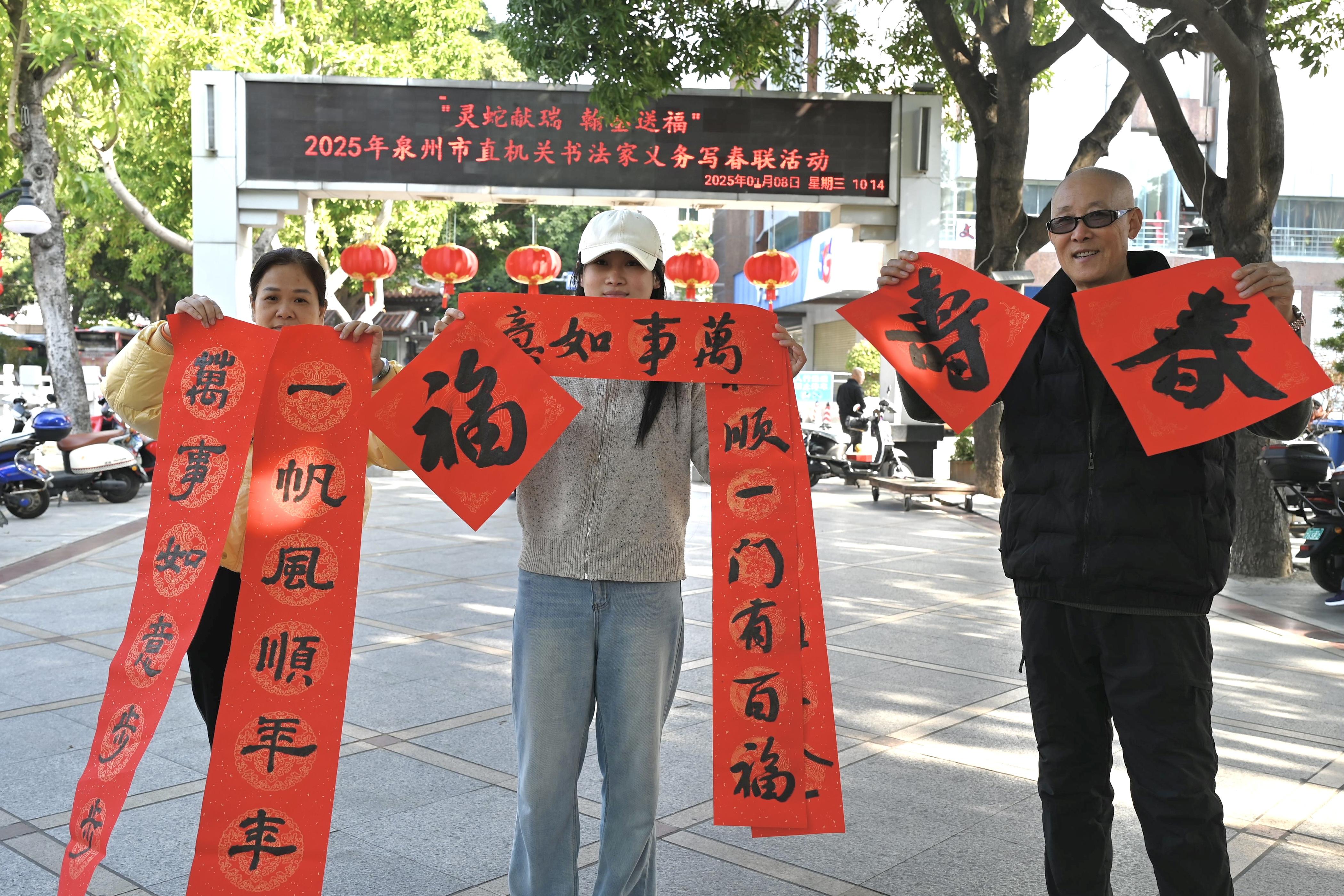 “工”送春联贺新春,“会”就幸福新生活。1月8日,“灵蛇献瑞 翰墨送福”——2025年市直机关书法家义务写春联活动在泉州市工人文化宫(百源宫)火热举办,为职工群众送上“娘家人”最诚挚的新春祝福。