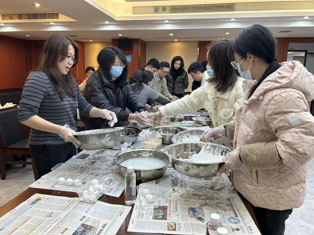 活动现场,志愿者们早早备齐白白的糯米粉、香甜的馅料,大家洗净双手后便迫不及待地挽起袖子,投入汤圆制作中。从揉面、包馅再到搓圆,志愿者们熟练掌握劲道,巧手翻飞间,一颗颗圆润可爱的汤圆“蹦跳登场”。现场气氛热烈,大家合作分工,不一会儿,白糯的汤圆在欢声笑语中越堆越高,传递着“团圆美满”的节日寓意。