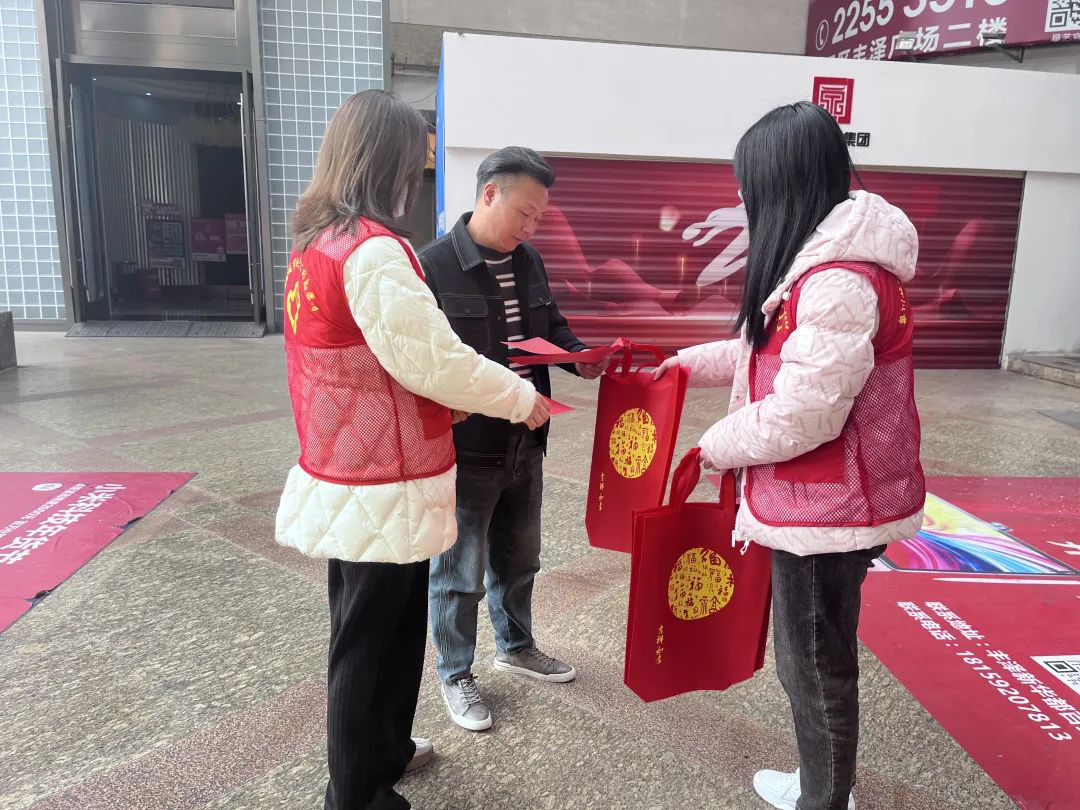 现场志愿者们还向泉州商城广场过路群众和沿街商户赠送精心定制的“福袋”,送出节日祝“福”,倡导绿色低碳生活理念,同时向广场游客发放节日期间文明旅游倡议书,培育文明旅游社会新风尚。