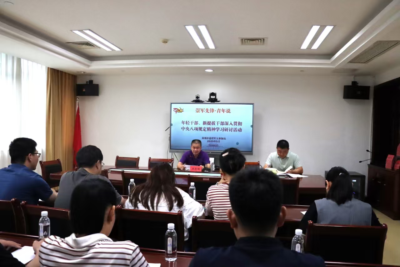 5月20日,市退役军人事务局举办“崇军先锋·青年说”暨年轻干部、新提拔干部深入贯彻中央八项规定精神学习教育研讨、警示教育活动。活动由局党组成员、副局长王志明主持并讲话,局机关、直属各单位40周岁以下年轻干部及2023年以来新提拔干部等参加。