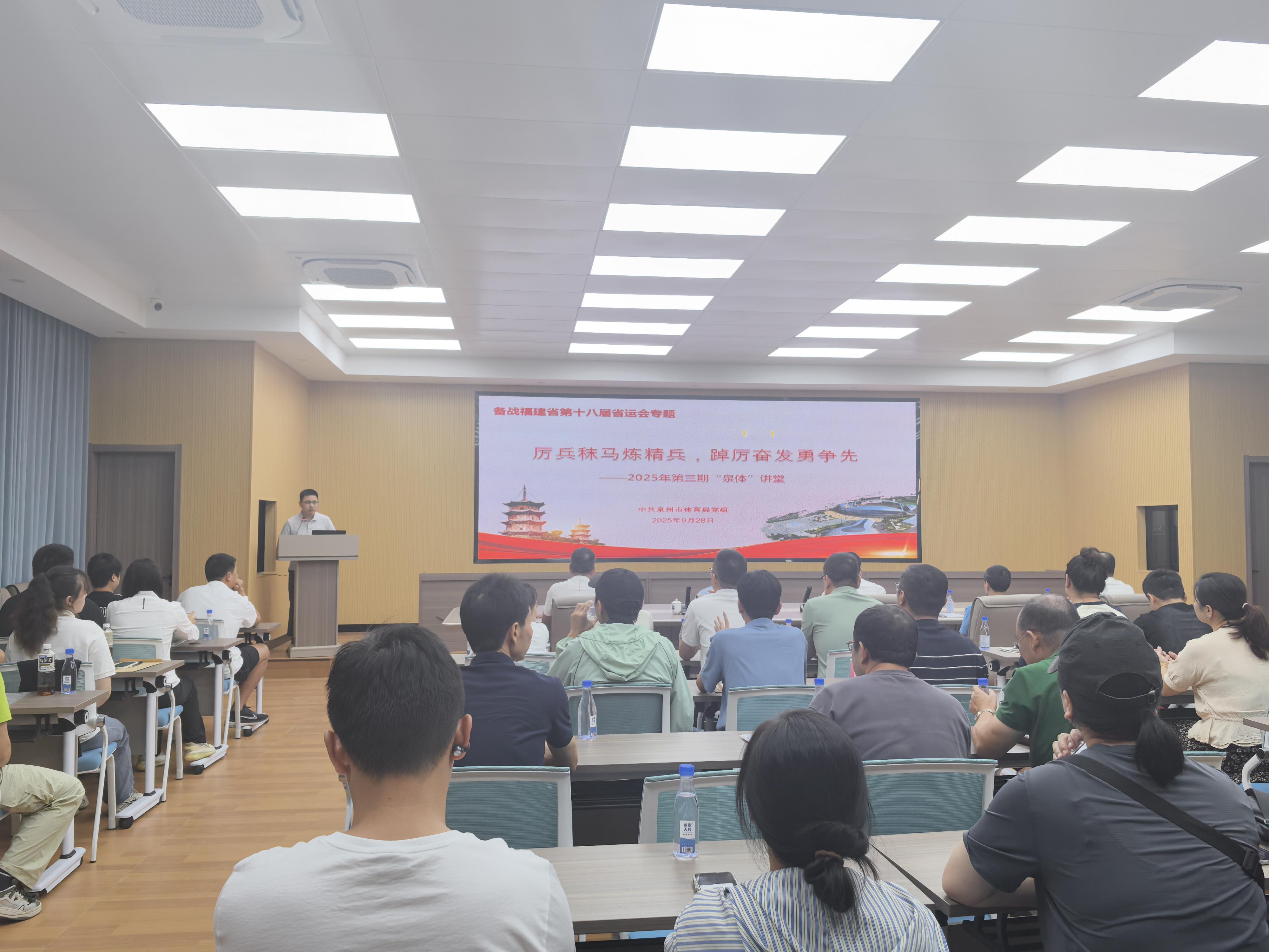 为深入贯彻落实习近平总书记关于体育工作的重要指示批示精神,严格落实市委、市政府工作部署,持续深化拓展“深学争优、敢为争先、实干争效”行动,进一步做好福建省第十八届运动会备战工作,9月28日,泉州市体育局2025年第三期“泉体”讲堂在泉州体育运动学校举行。市直体育系统处级干部、各科室负责人、竞训科全体人员、各直属单位班子成员、体校和体工队训练科室主要负责人以及教练员共百余人参加。