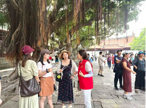 “讲”古城文化。在文化底蕴深厚的古城街区,党员文旅志愿者化身“文化讲解员”,为兴致盎然的游客讲述刺桐古城的历史脉络与民俗风情,让短暂的游览升华为深度的文化体验。