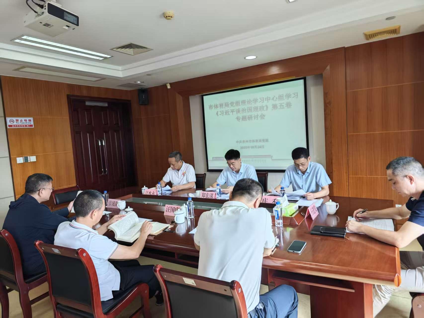 10月24日,市体育局党组理论学习中心组召开《习近平谈治国理政》第五卷专题学习研讨会。局党组书记郑宏谋主持会议,市委市直机关工委委员庄禾莅会指导,市直体育系统处级干部参加。