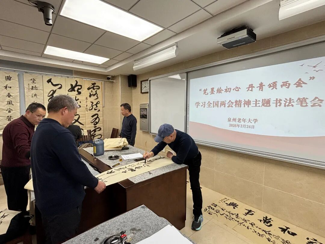 此次书法笔会是泉州老年大学深化思政教育的创新实践,通过“思政教育+特色活动”模式,让老年学员在潜移默化中坚定理想信念、提升思想觉悟。学校将精选此次活动的优秀作品举办专题展览,并组织“银领刺桐”志愿服务队走进社区、乡村、校园,开展作品巡展和赠字活动,让两会精神通过笔墨书香传递到基层一线。